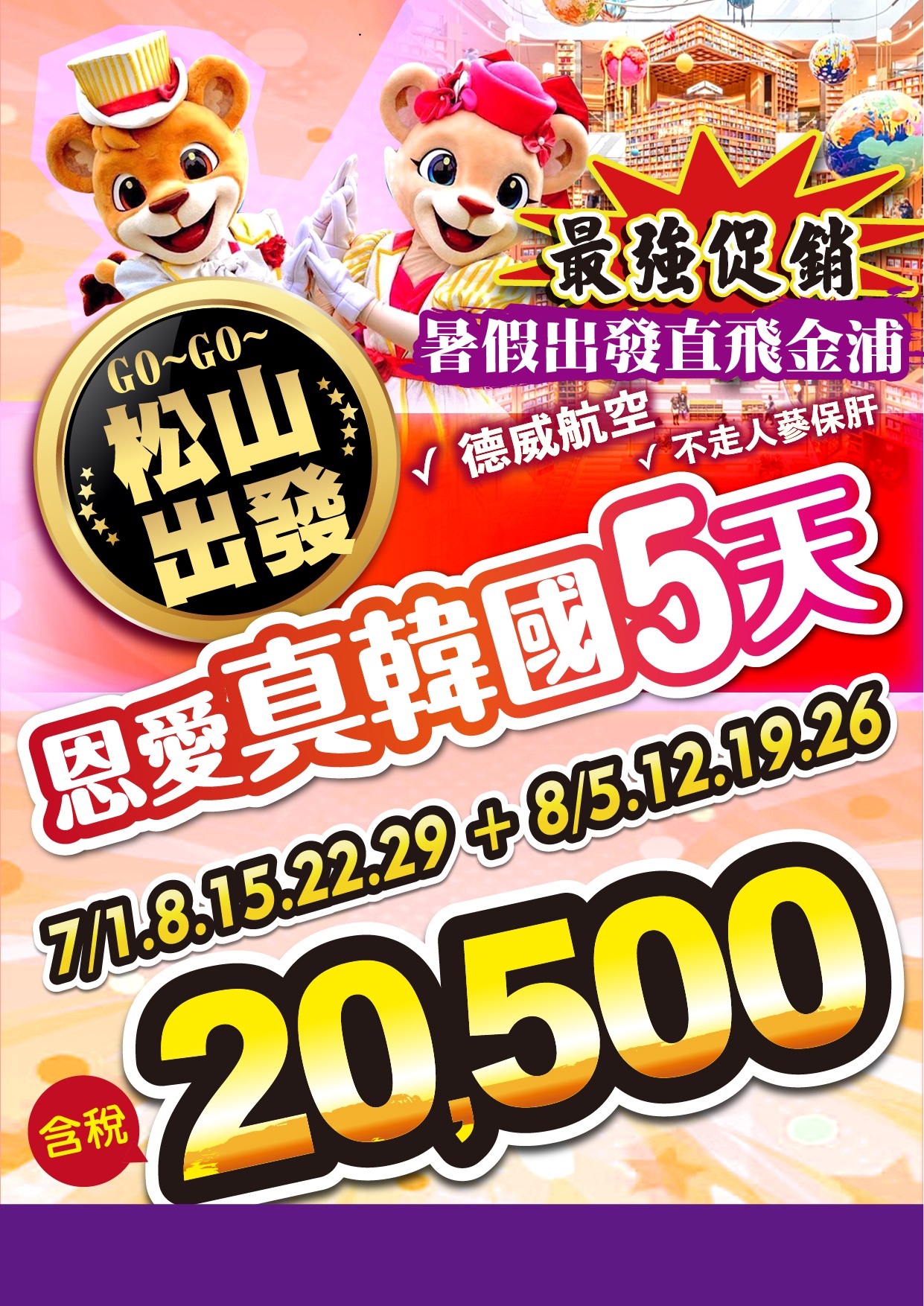 出發日期:2026年7月3.10.24日 8月14.28日