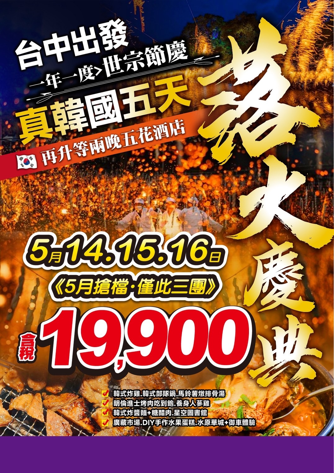 韓國專家真威韓國落火慶典(一年一度世宗節慶)再升等兩晚五花酒店~5天保證不(14)