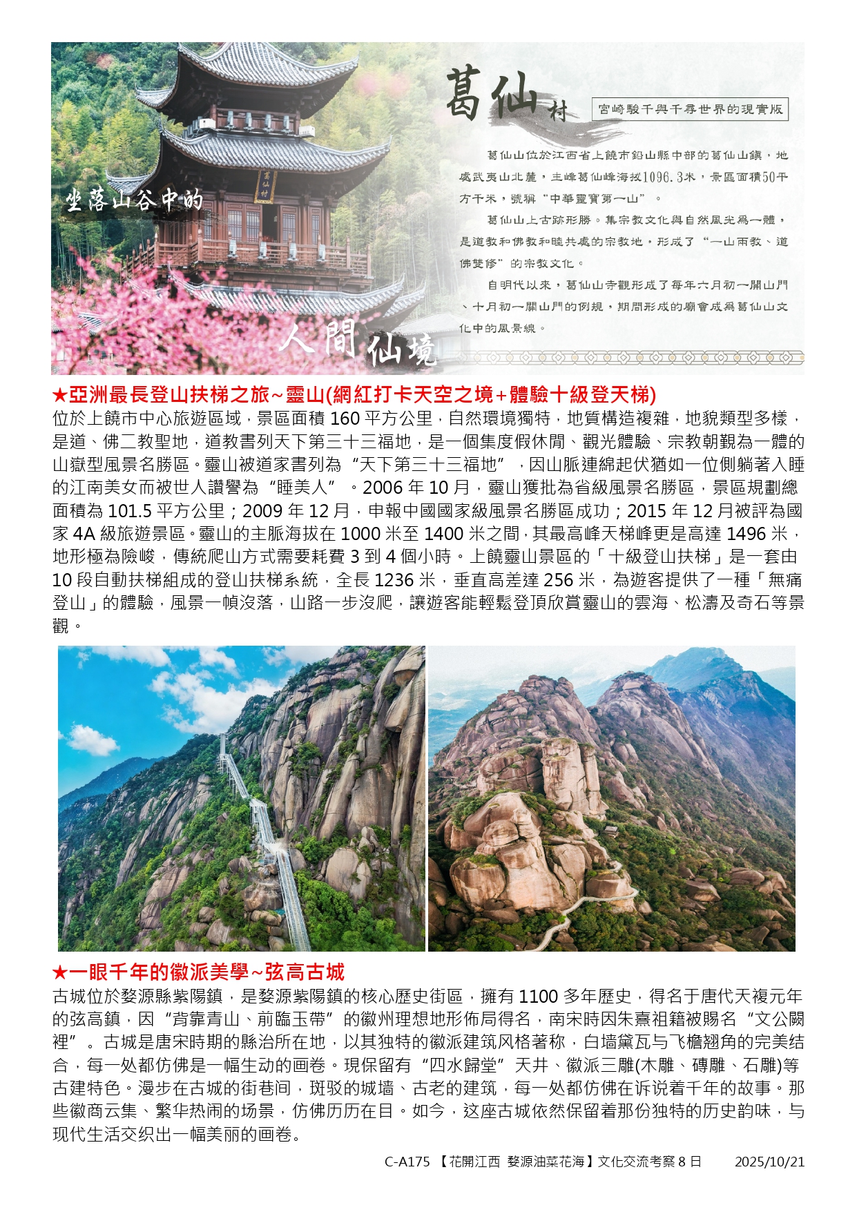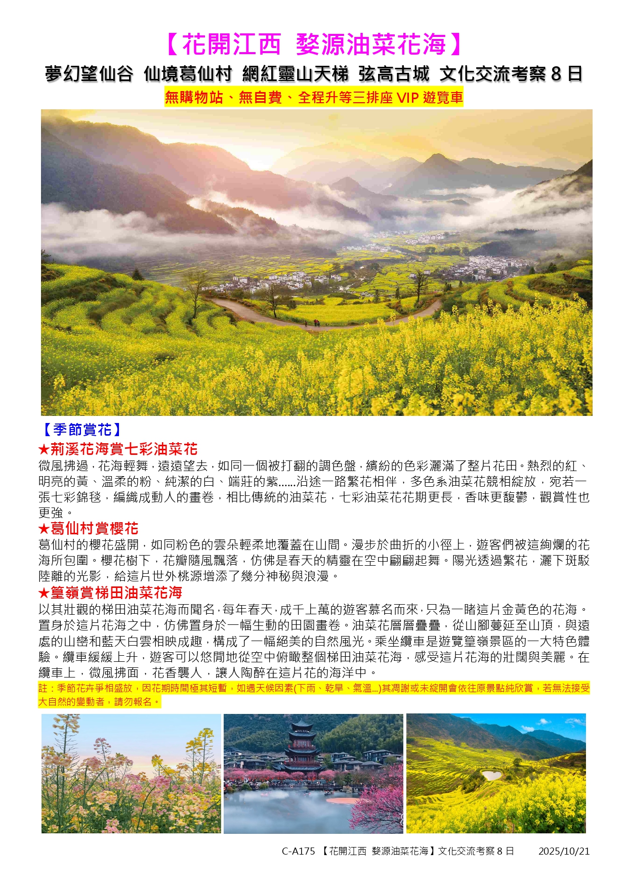 【花開江西 婺源油菜花海】夢幻望仙谷 仙境葛仙村 網紅靈山天梯 弦高古城 (2)