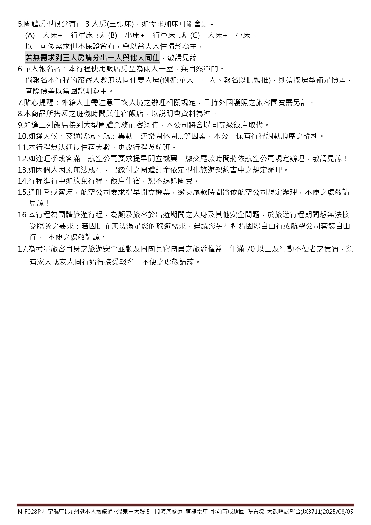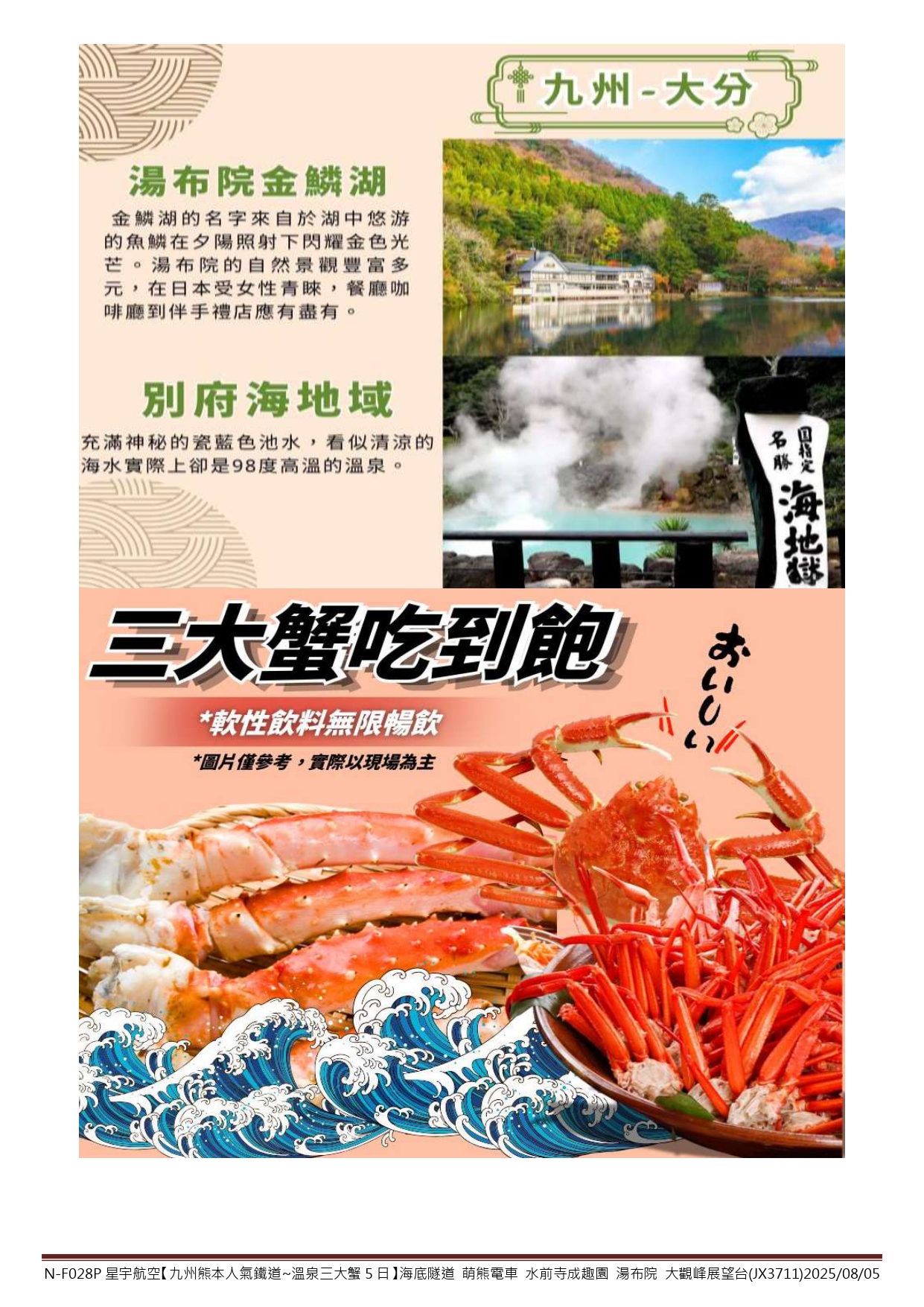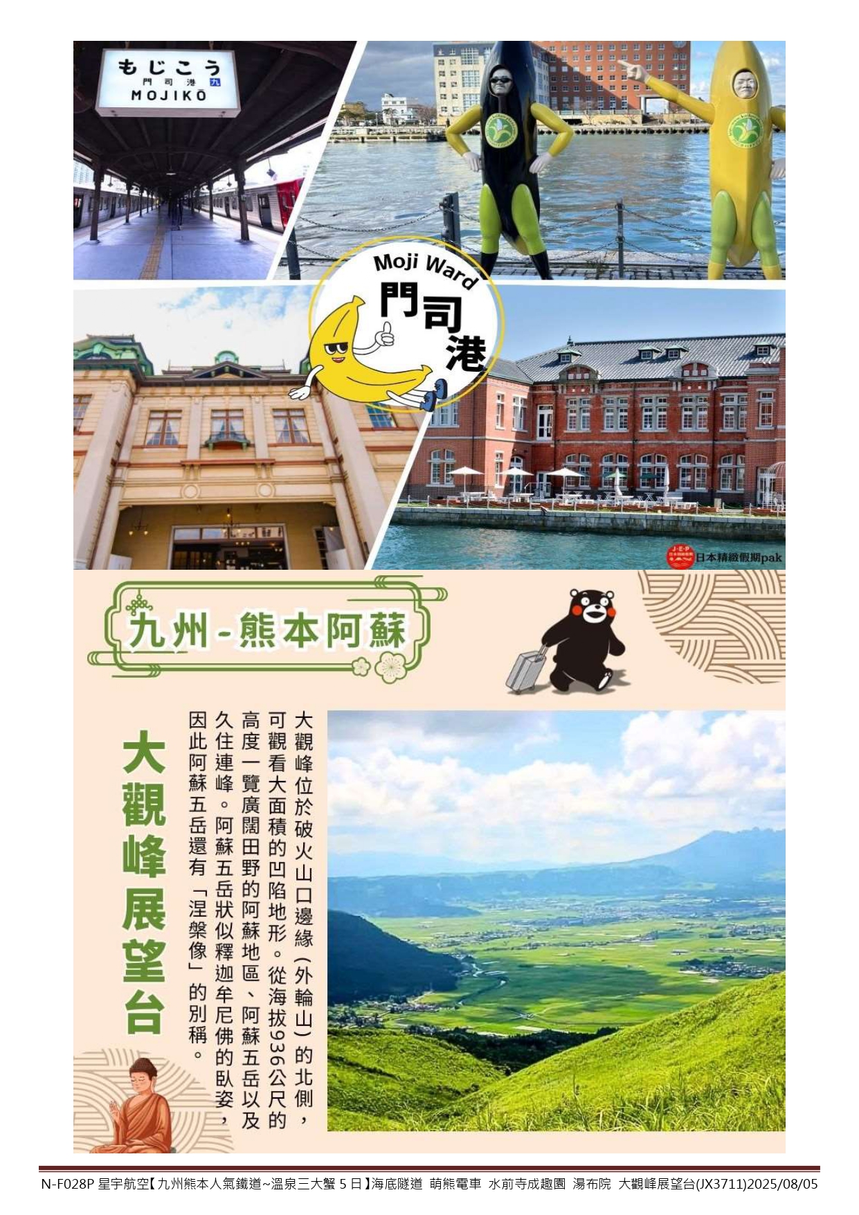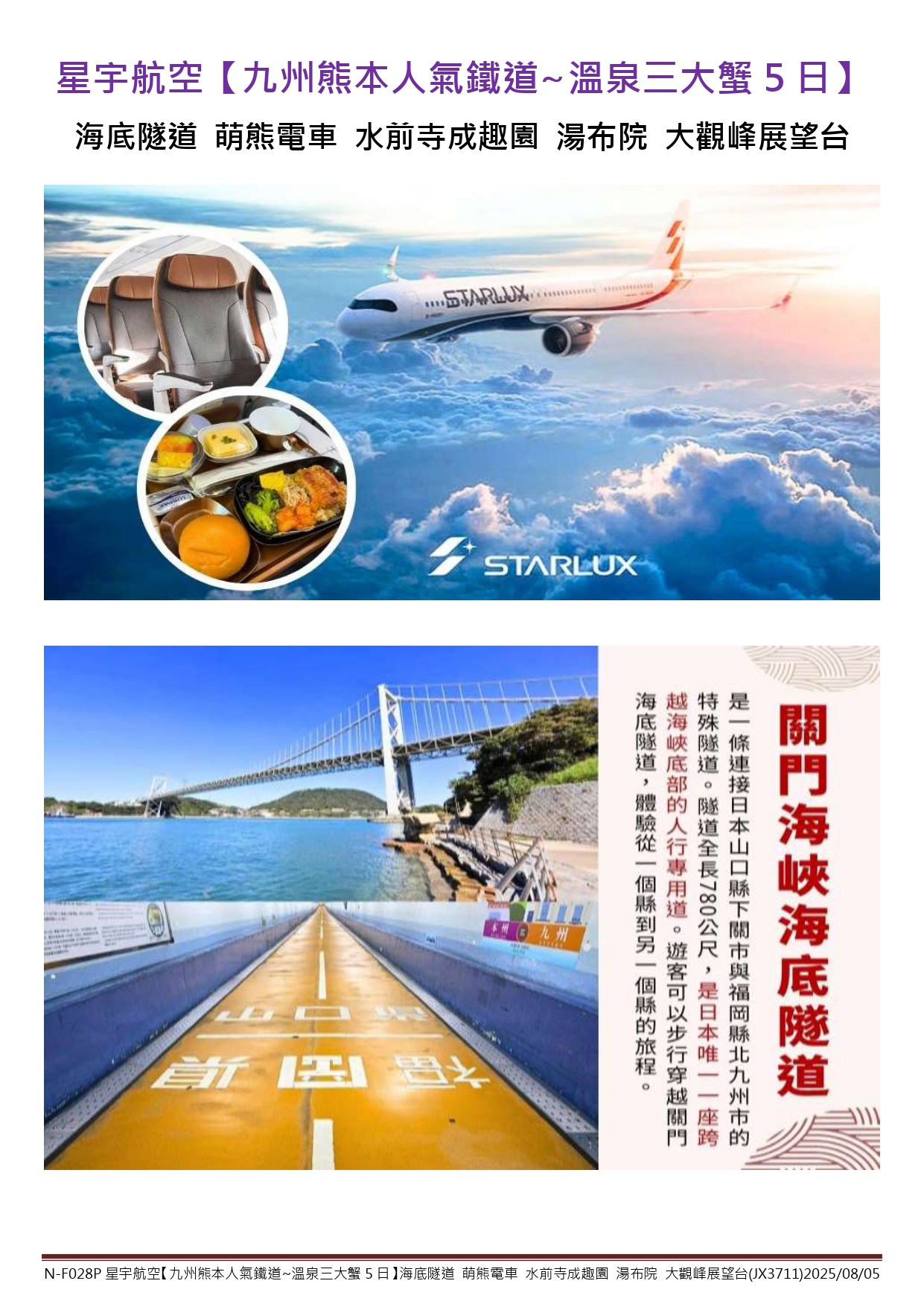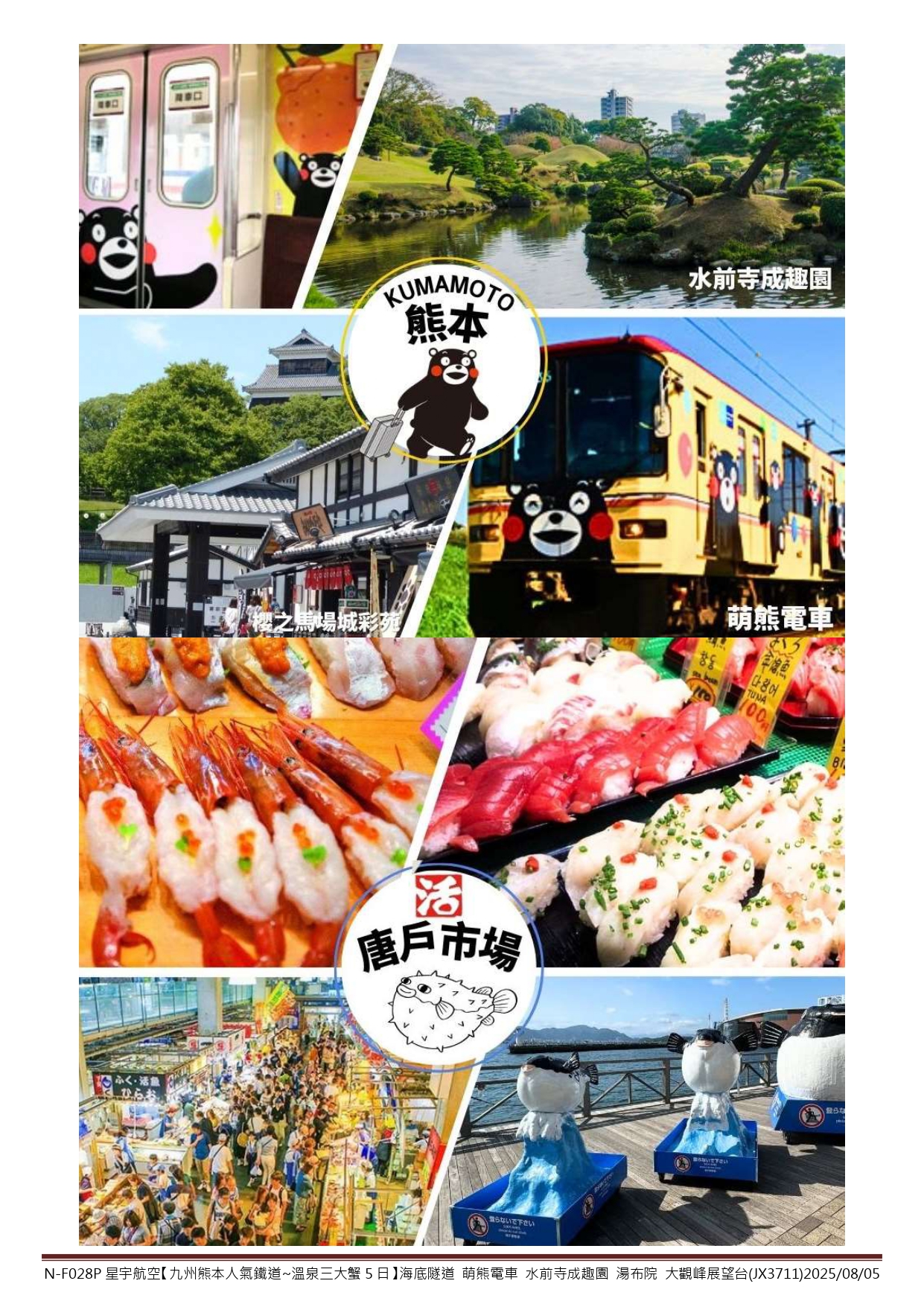 星宇航空【九州熊本人氣鐵道~溫泉三大蟹5日】海底隧道 萌熊電車 水前寺成趣園 (2)