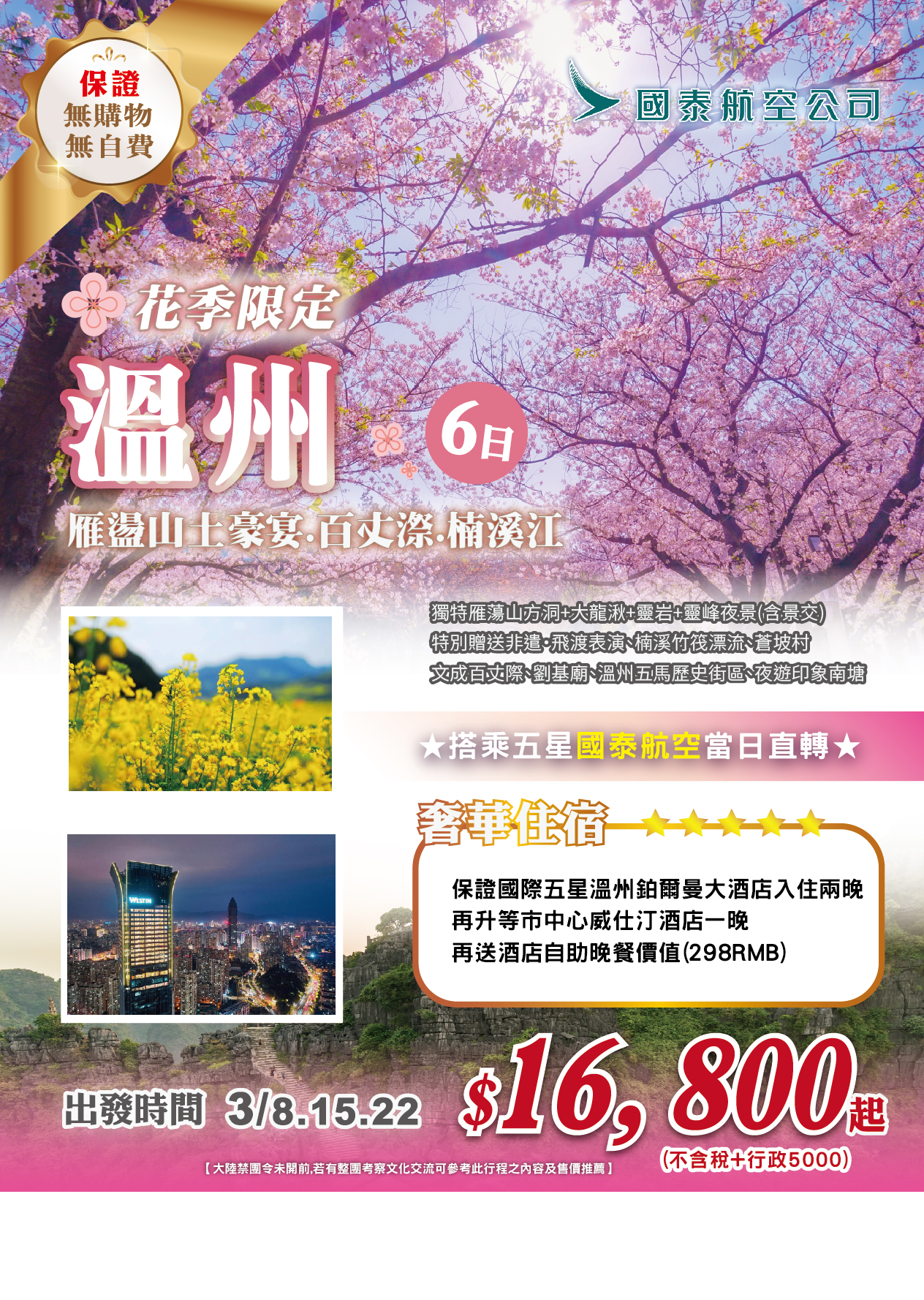 出發日期:2026年3月8.15.22日