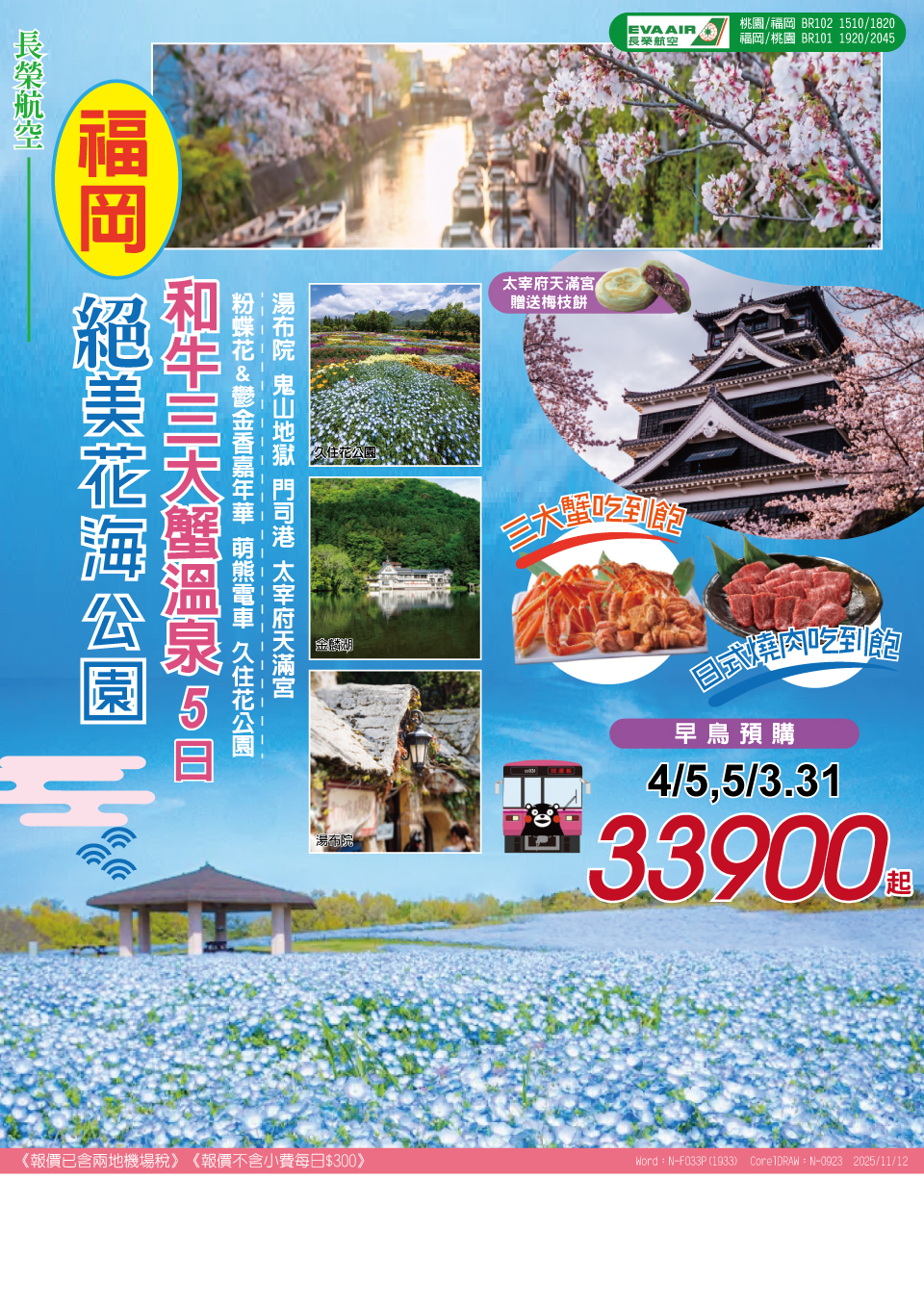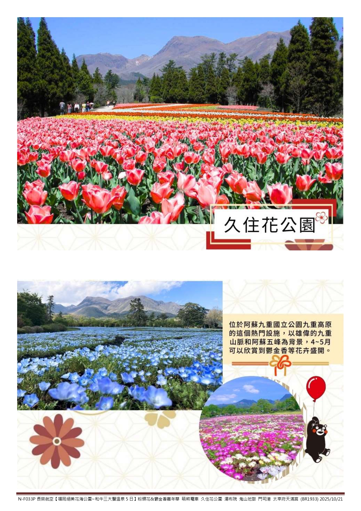 【福岡絕美花海公園~和牛三大蟹溫泉5日】粉蝶花_鬱金香嘉年華 萌熊電車 (2)
