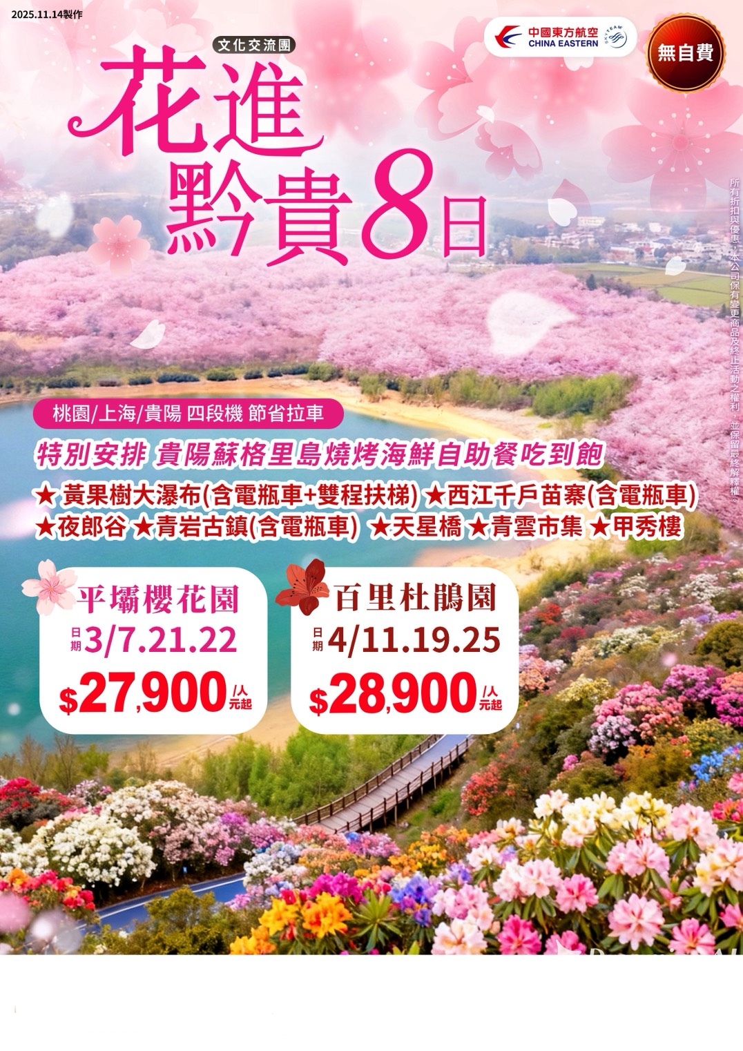 2026年3月櫻花【全球傳奇】花進黔貴8日~黃果樹瀑布.西江千戶苗寨.青岩古鎮8日-無自費(3)