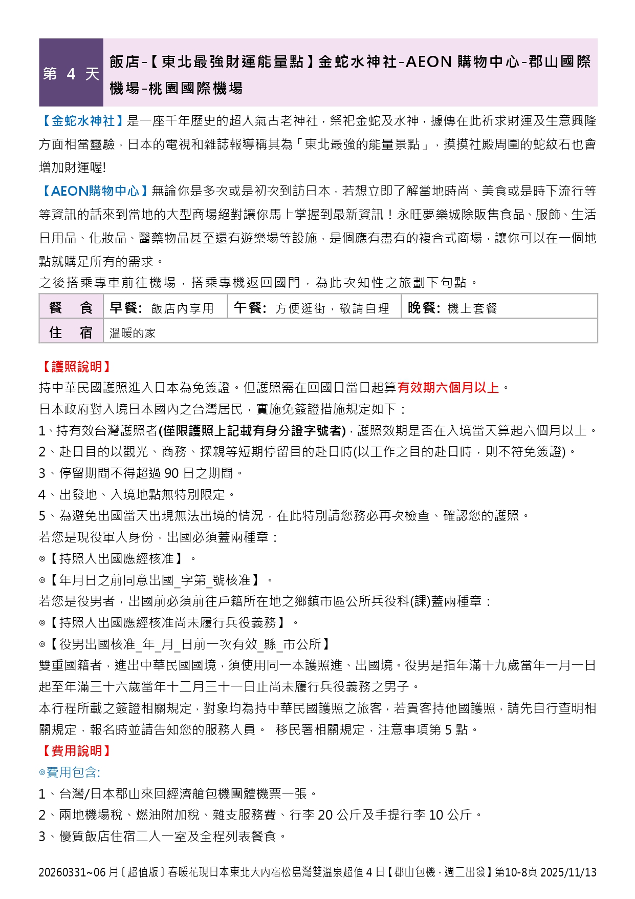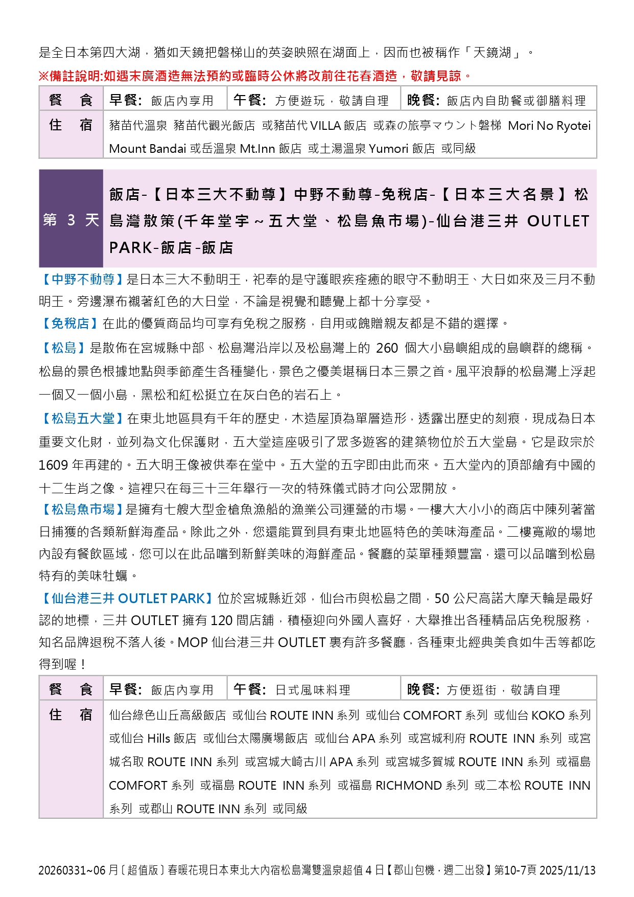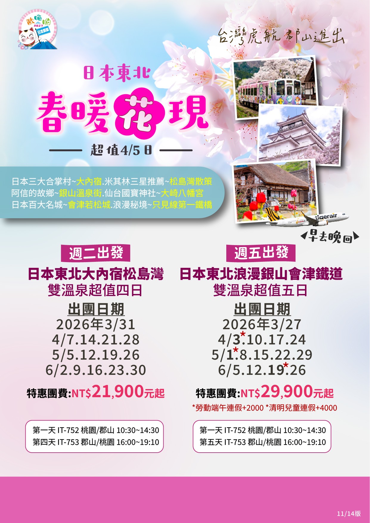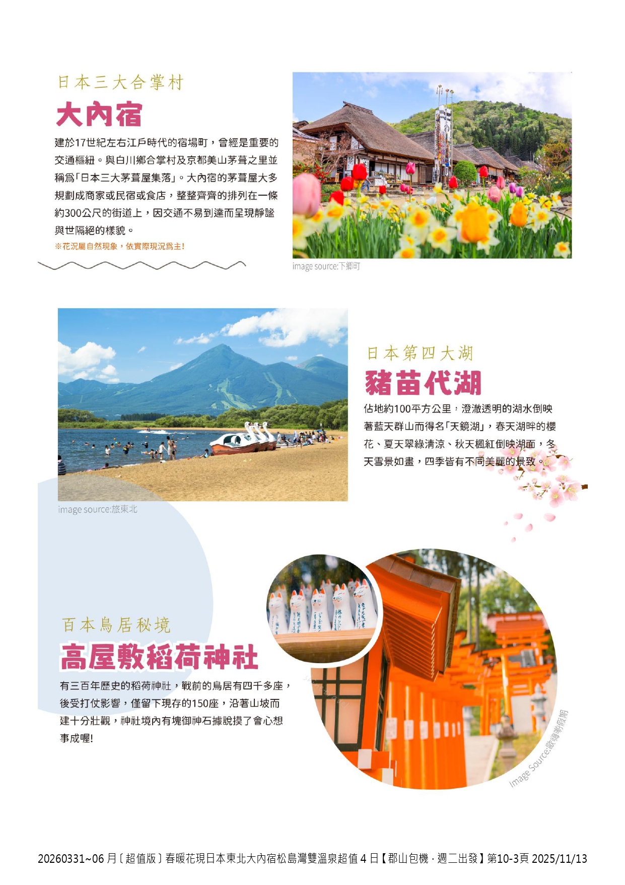 20260331~06月〔超值版〕春暖花現日本東北大內宿松島灣雙溫泉超值4日【郡山包機.週二出)(13)