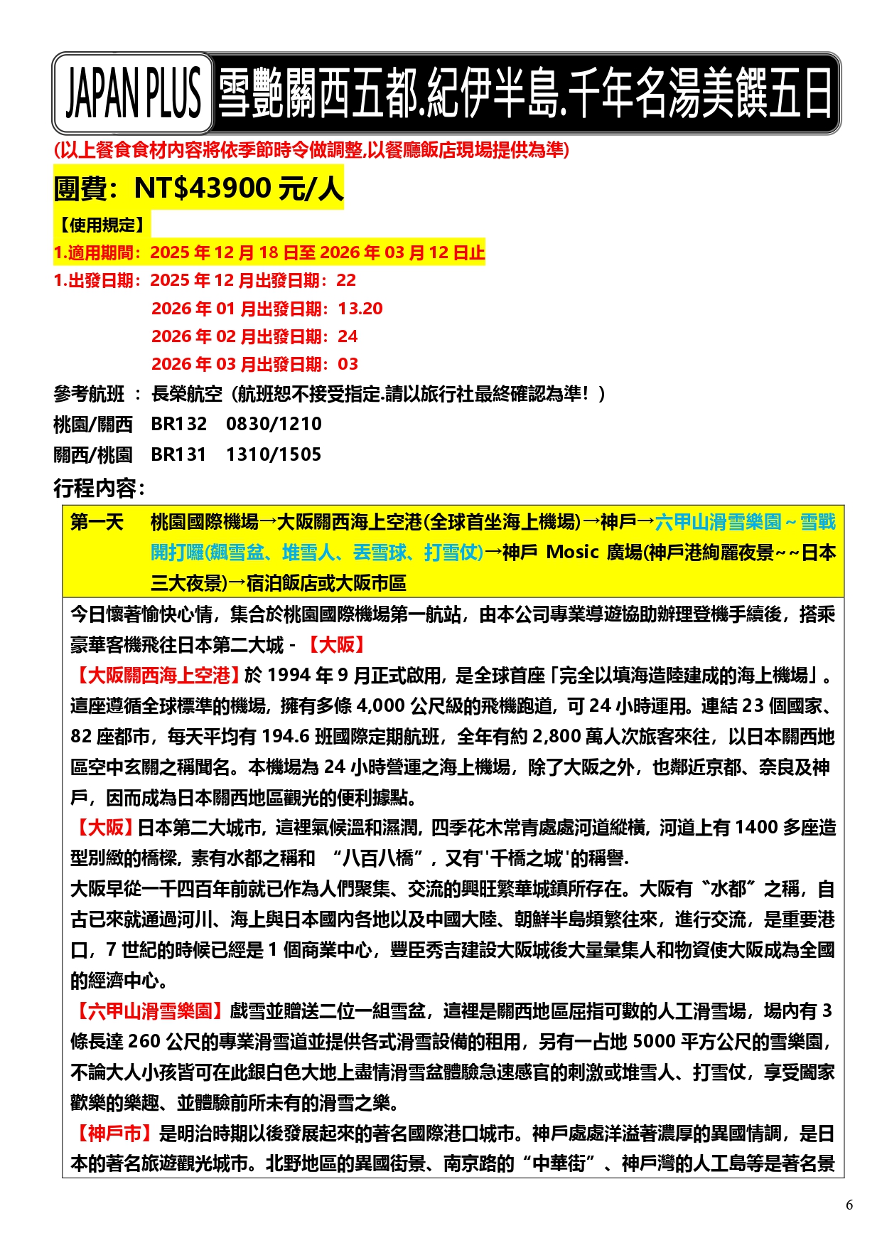 出發日期:2025年12月&2026年1月到3月