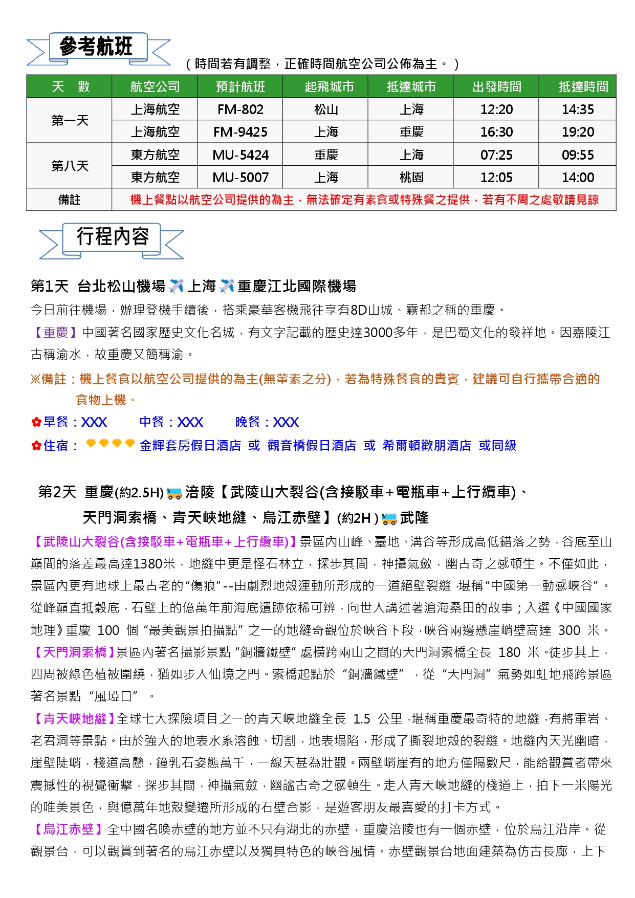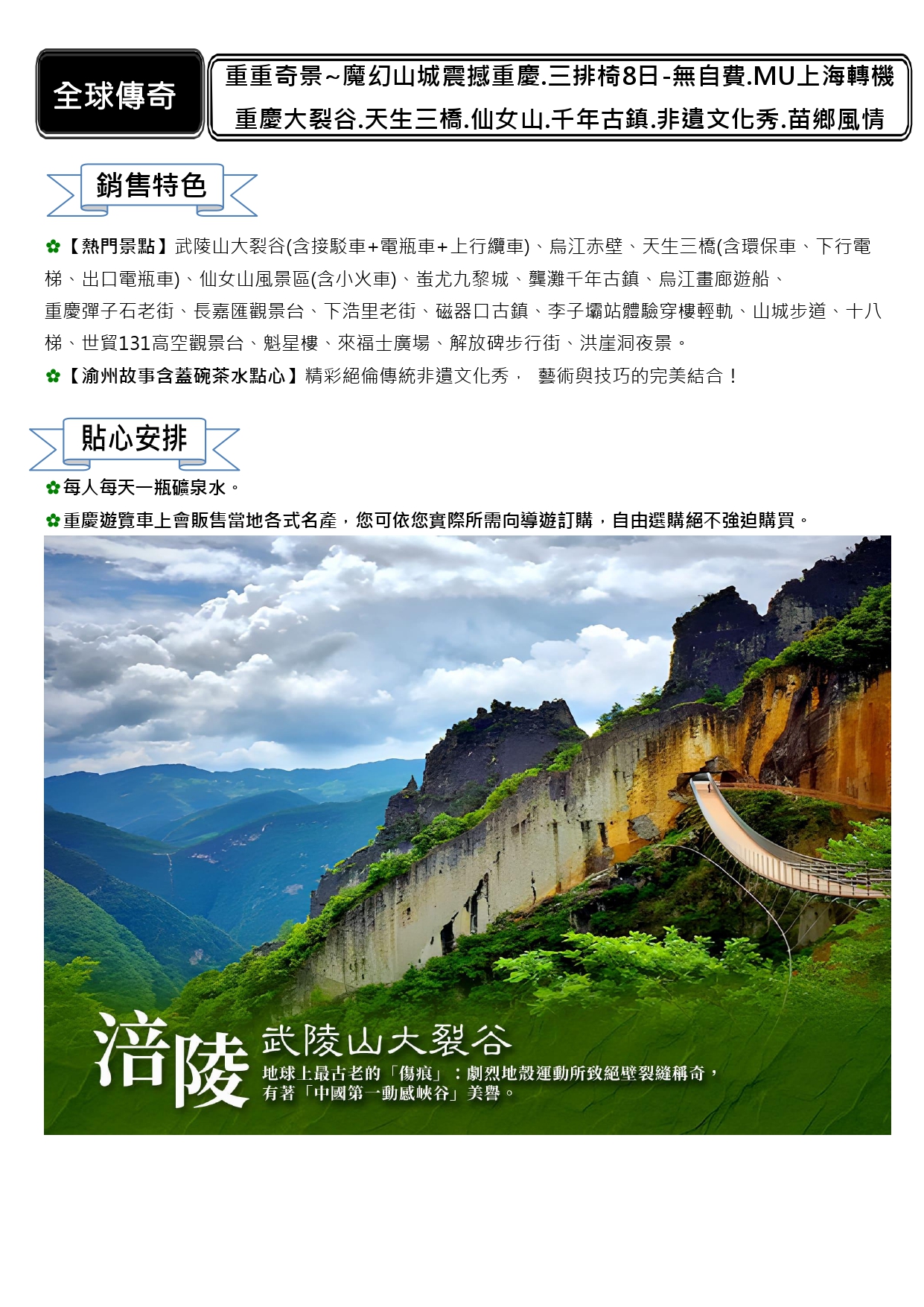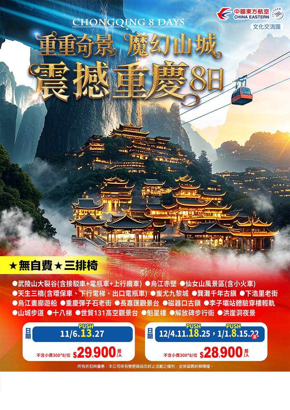 【全球傳奇】重重奇景~魔幻山城震撼重慶.三排椅8日-無自費.MU上海轉機(3)