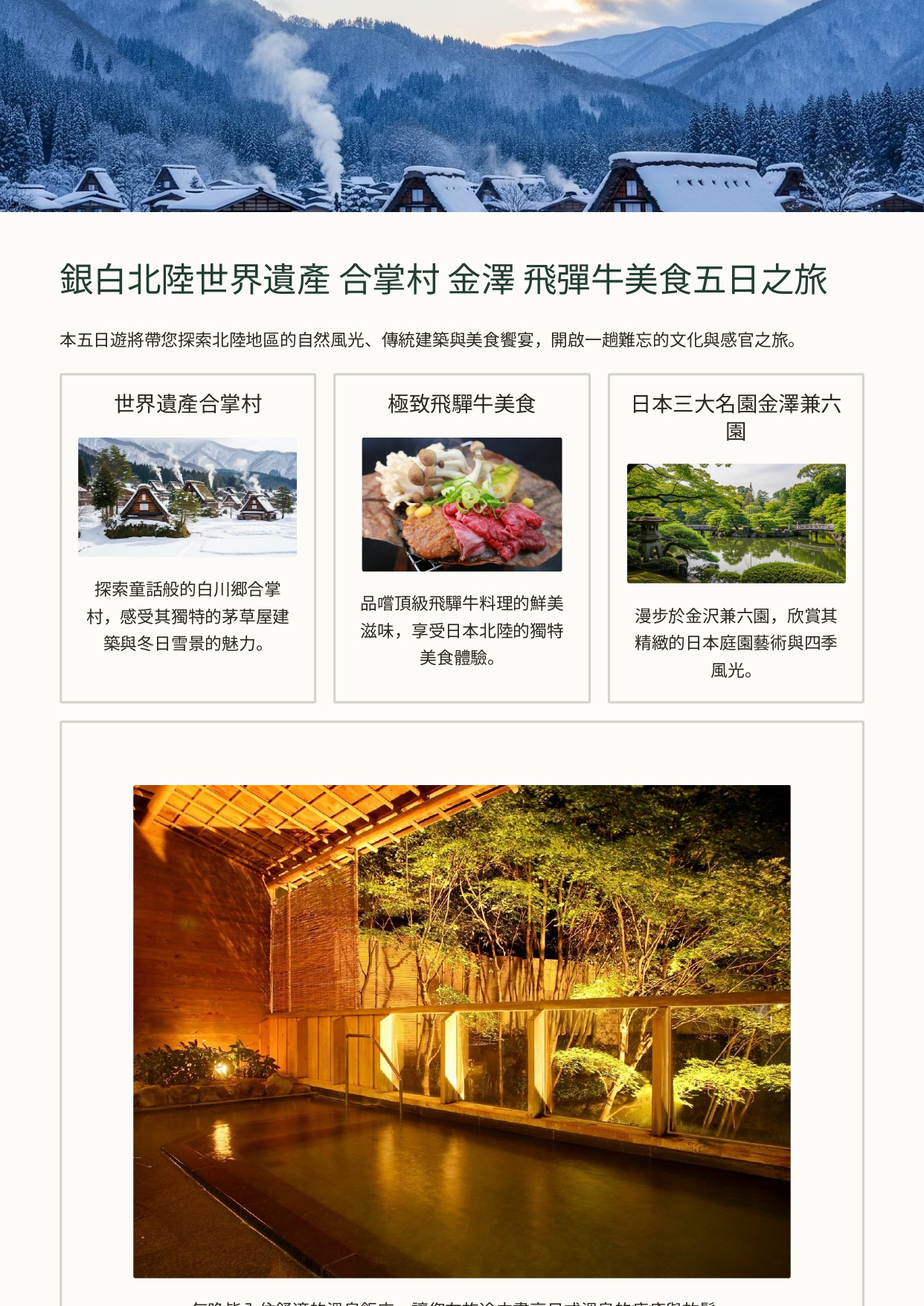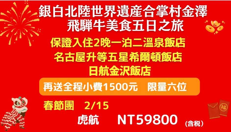 (升級版) 銀白北陸世界遺產 合掌村 金澤 飛彈牛美食五日之旅