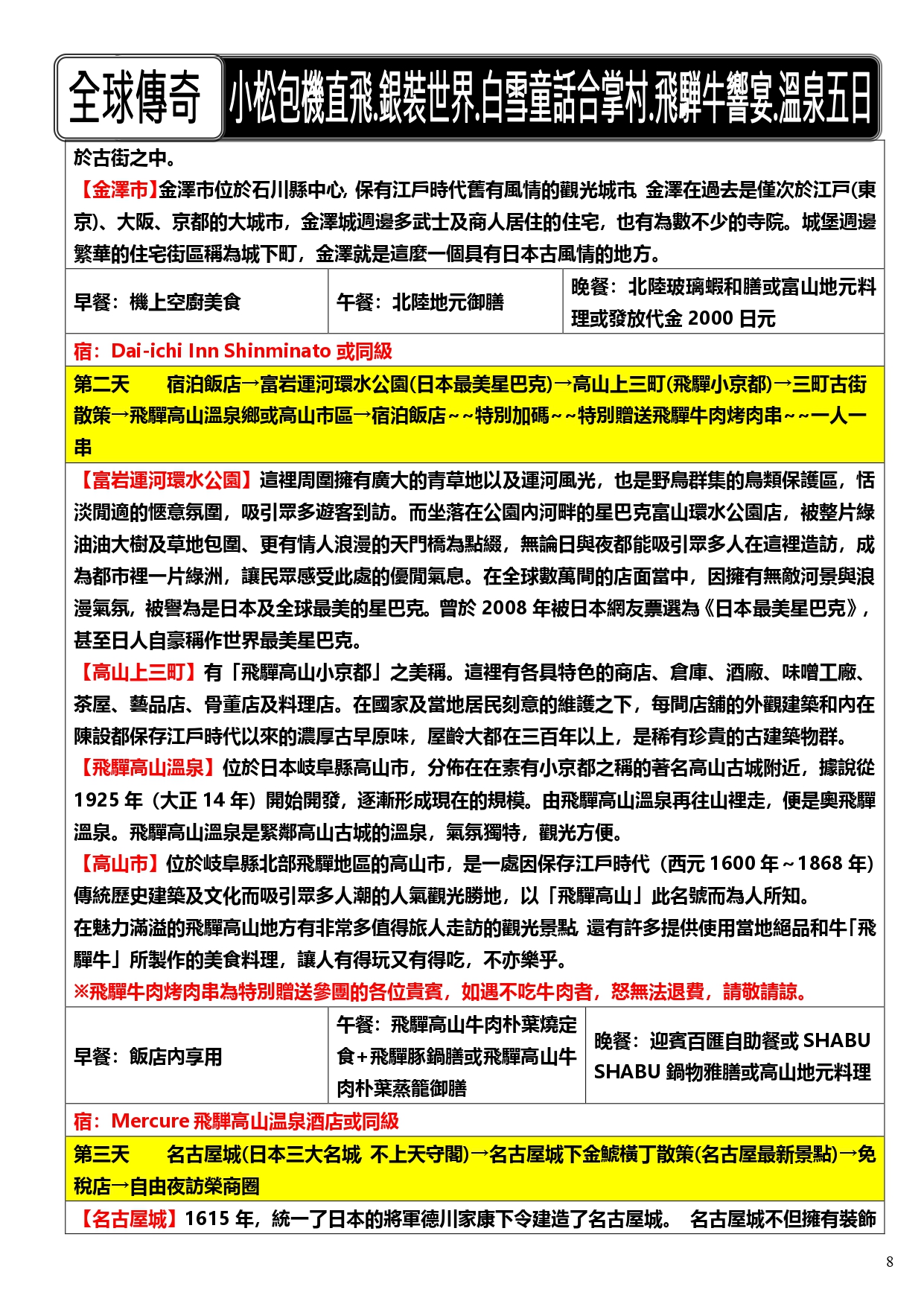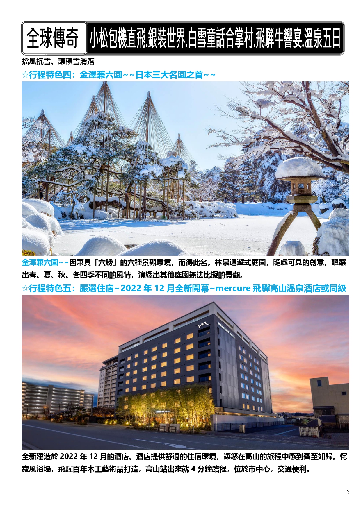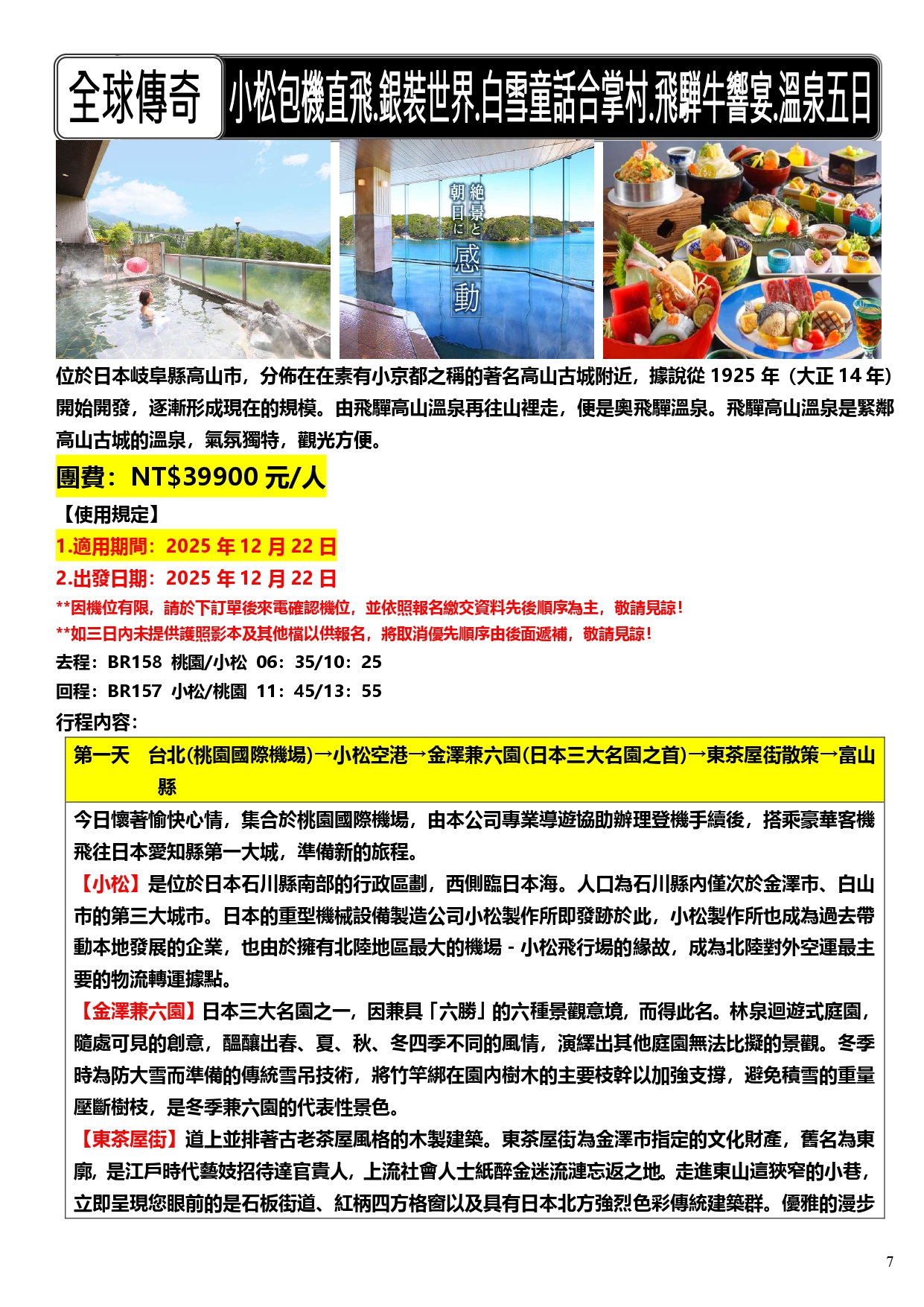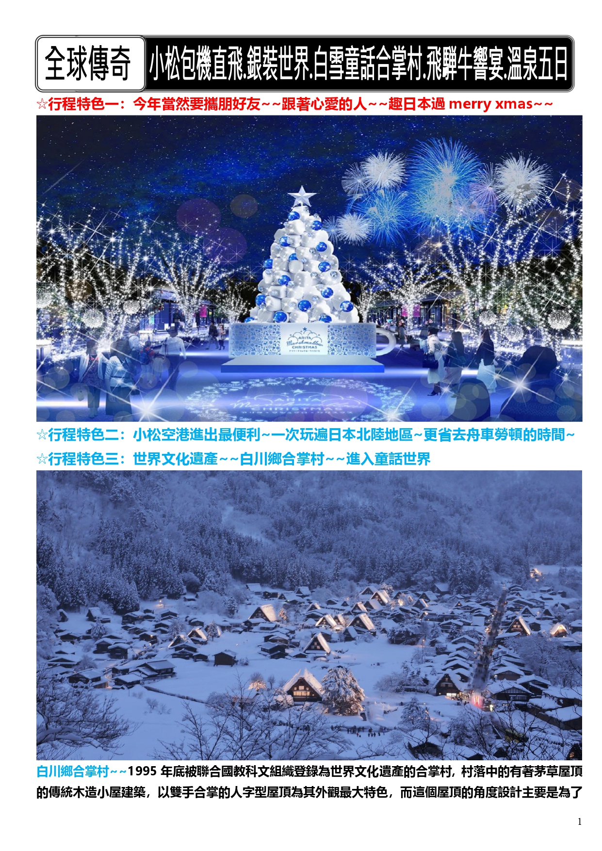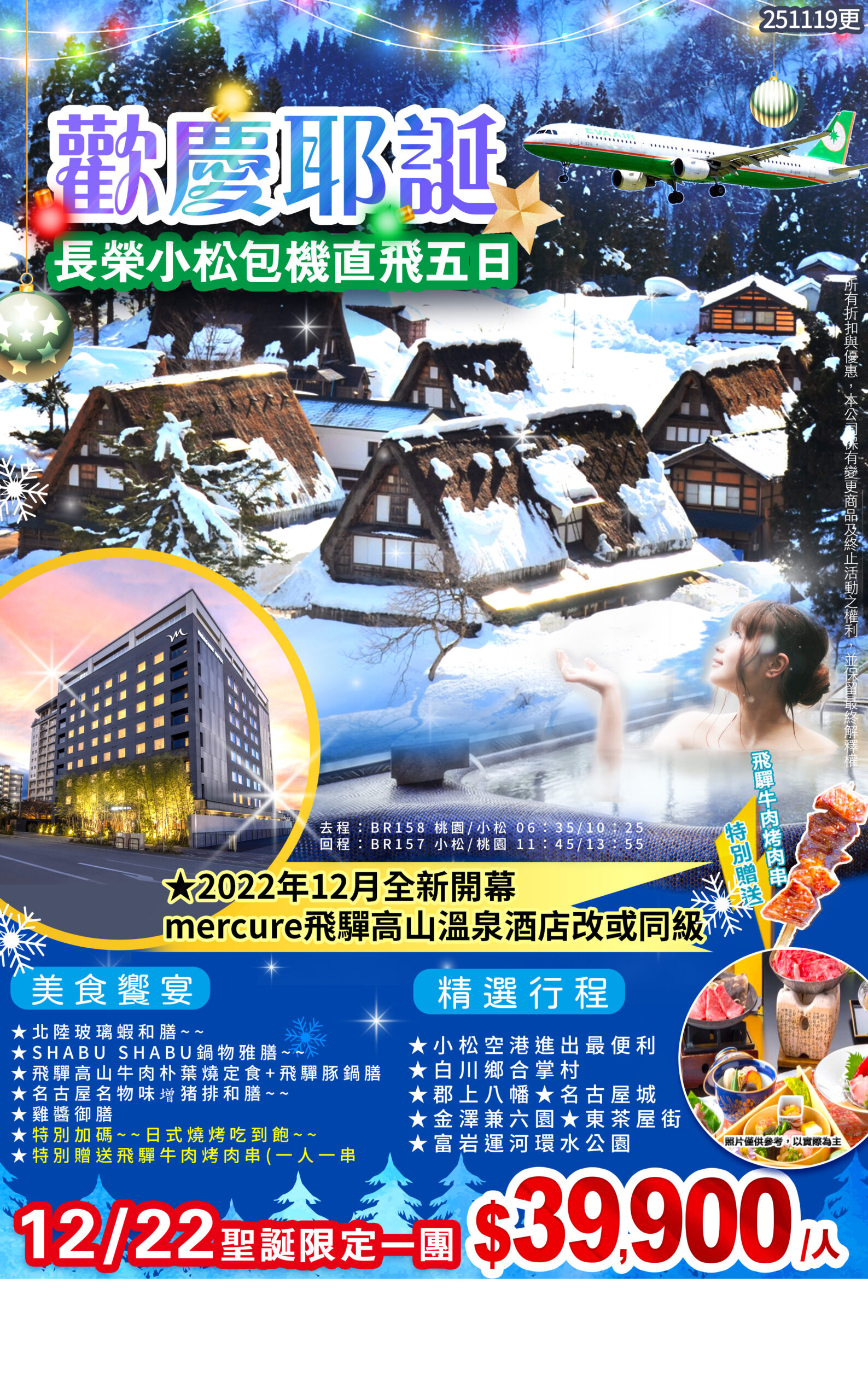 2025年12月22日歡慶耶誕.限定一團.小松包機直飛.銀裝世界.白雪童話合掌村.飛騨牛響宴.溫泉五日(3)