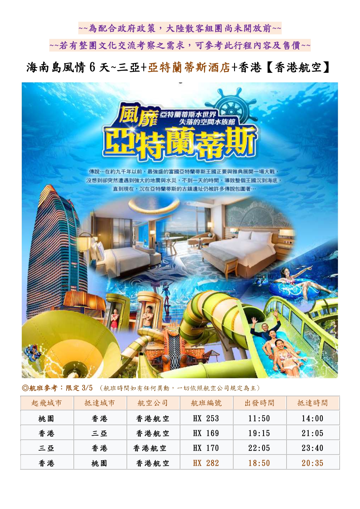 海南島風情6天~三亞.亞特蘭蒂斯(1)
