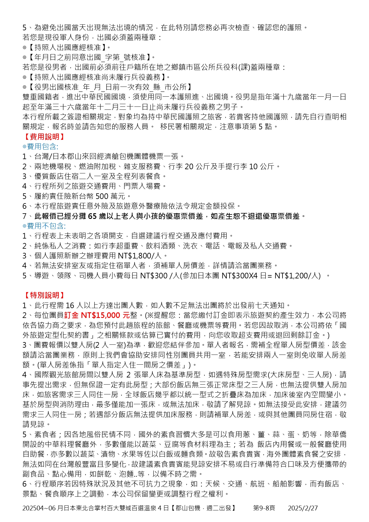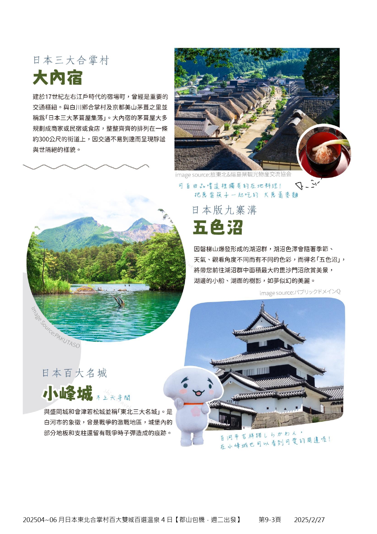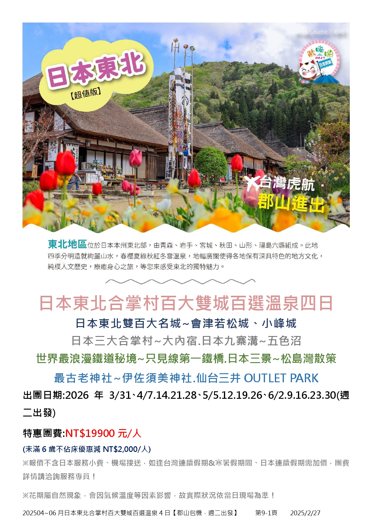 4月-6月限定日本東北合掌村百大雙城百選溫泉4日【郡山包機.週二出發】(3)