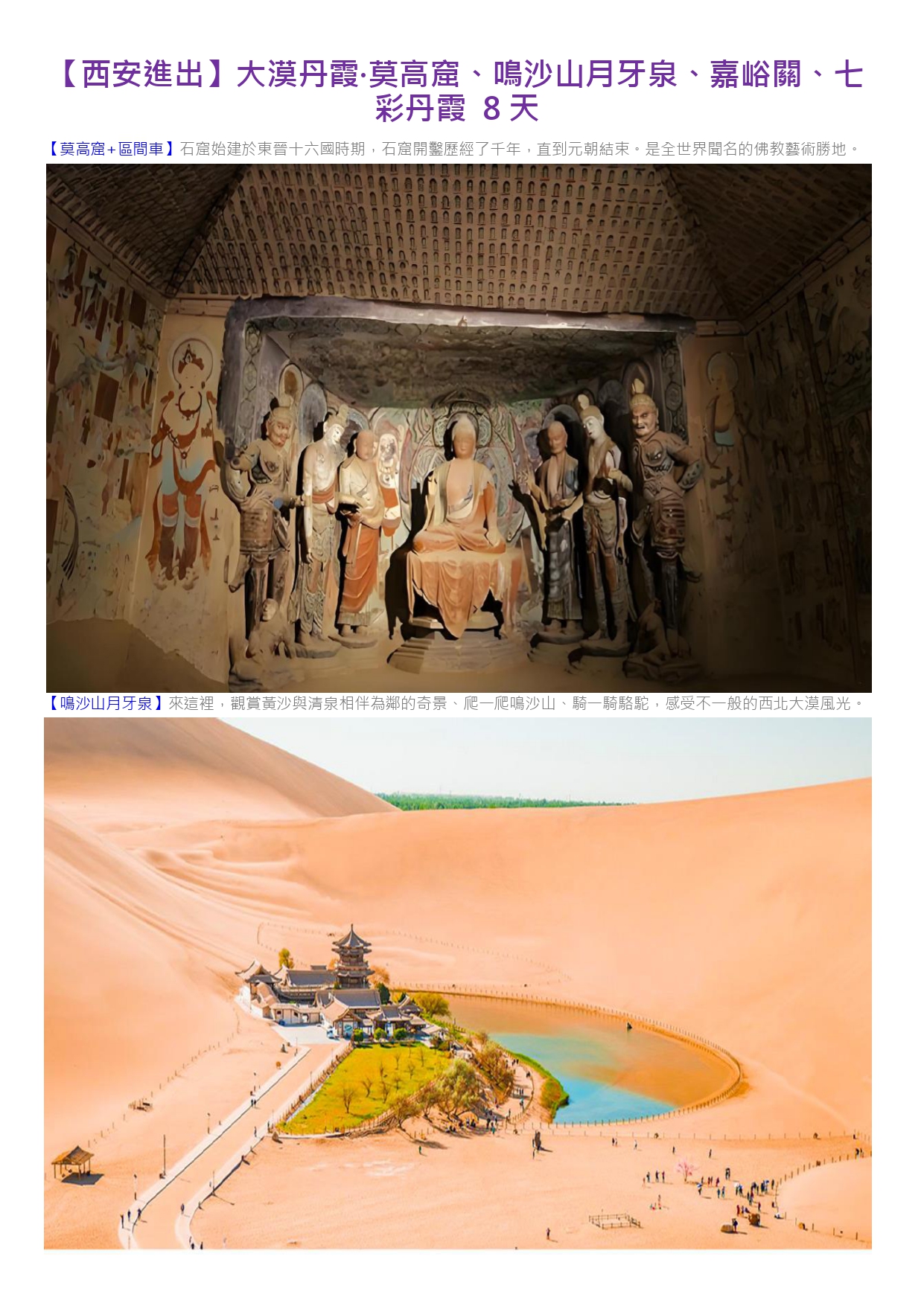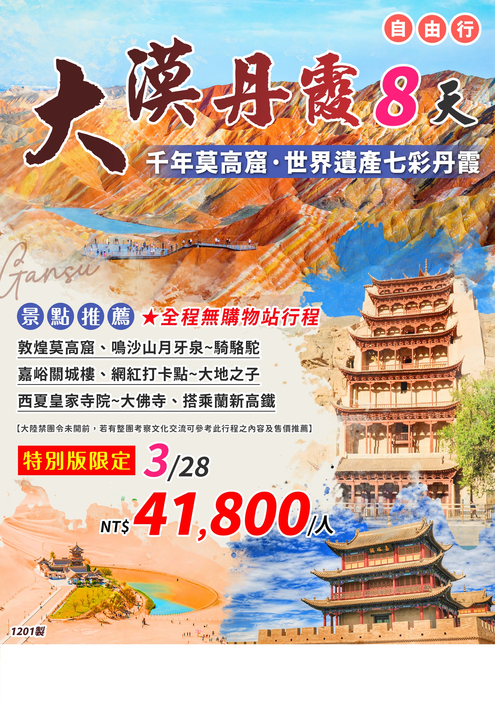 【西安進出】大漠丹霞·莫高窟、鳴沙山月牙泉、嘉峪關、七彩丹霞 8天(22)