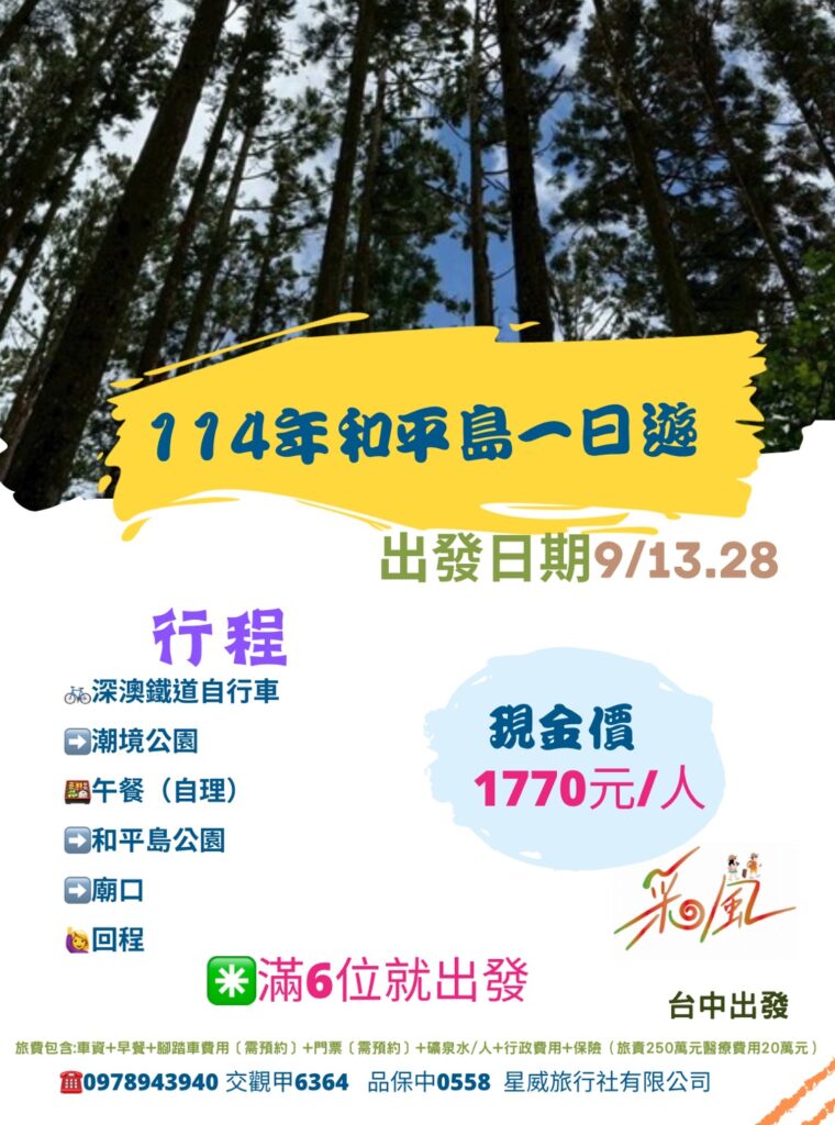 114年和平島一日遊 出發日期:9/13 .28 報名費用:(現金價)1770元/人 💰旅費包含:車資+早餐+ […]