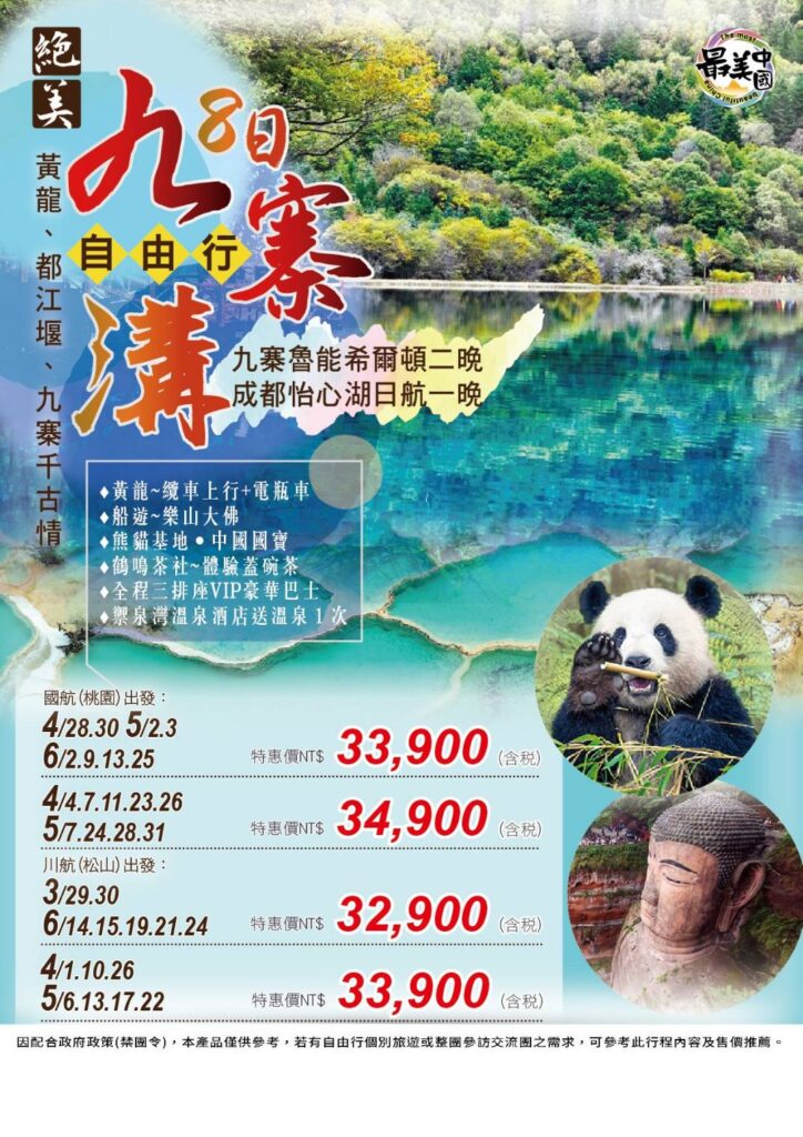絶美九寨。三大世遺希爾頓8日~黃龍、船遊樂山大佛、都江堰、熊貓基地、九寨千古情(3)