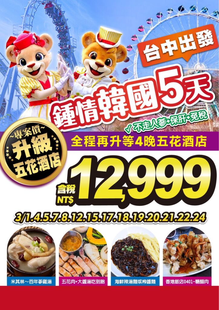 中TW升級五花酒店專案價《不走人蔘+保肝+免稅店》鍾情韓國好威風(全程再升等4晚五花酒(14) 台中