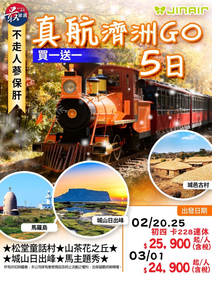 買一送一【真航濟州GO】松堂童話村.山茶花之丘.城山日出峰.馬主題秀5日(不走人蔘保肝)(3)