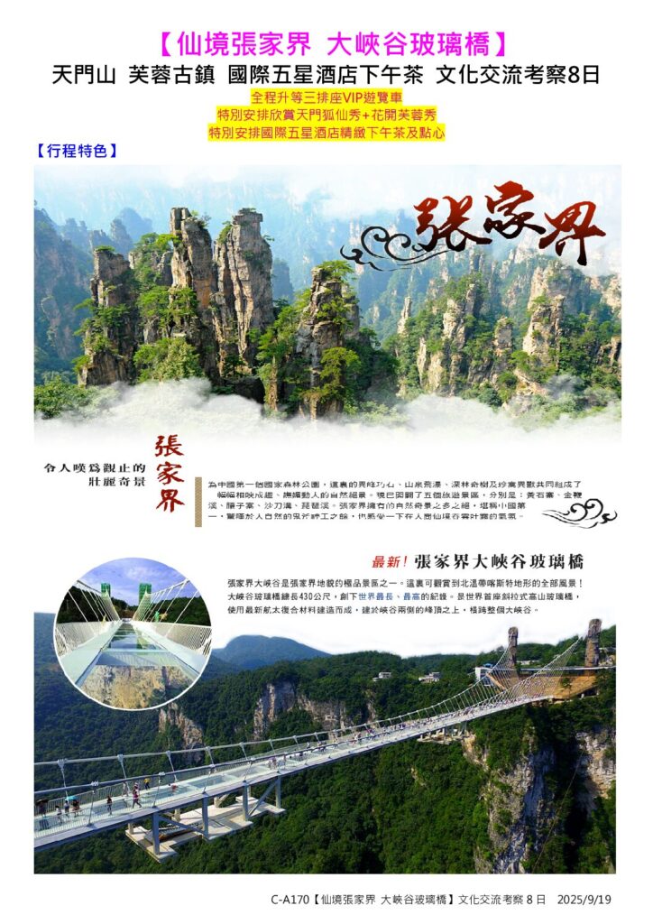 【仙境張家界 大峽谷玻璃橋】天門山 芙蓉古鎮 國際五星酒店下午茶 文化交流考察8日(2)