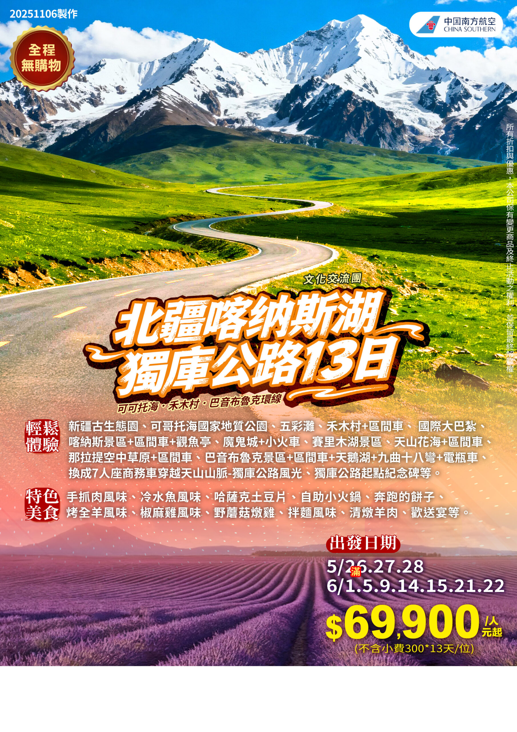 出發日期:2026年4月15.22日 5月6.20日 6月10.24日
