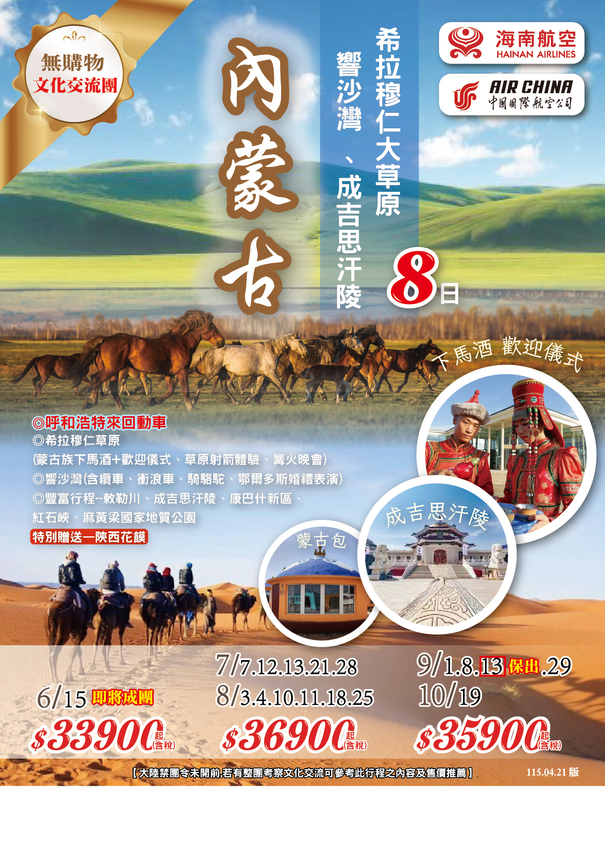 內蒙古希拉穆仁大草、響沙灣 、成吉思汗陵8日(含二段動車)(7)
