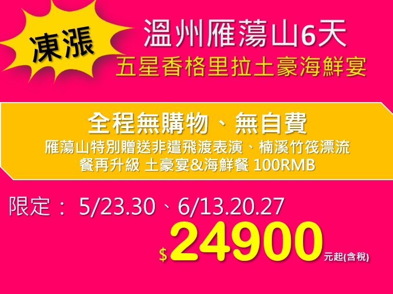 溫州雁蕩山 香格里拉土豪海鮮宴五星6日(7)