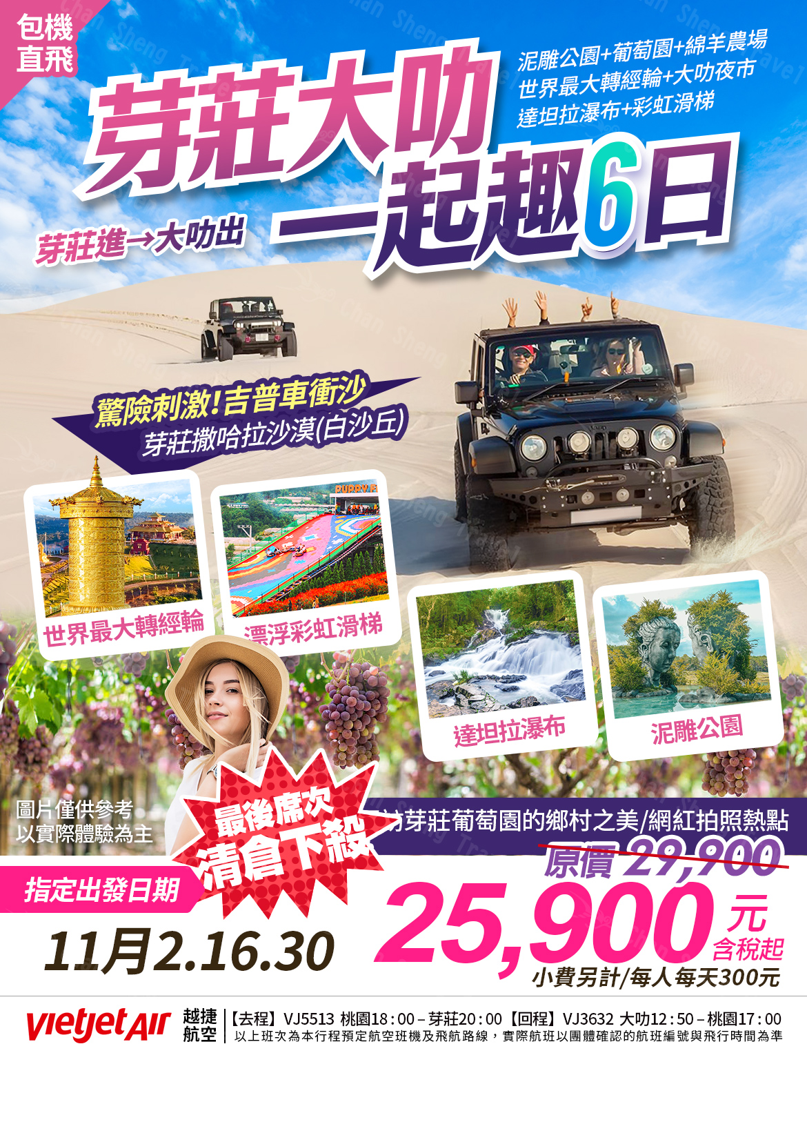 【芽莊大叻一起趣】芽莊撒哈拉沙漠衝沙趣+大叻轉經輪.採果樂6日(24)