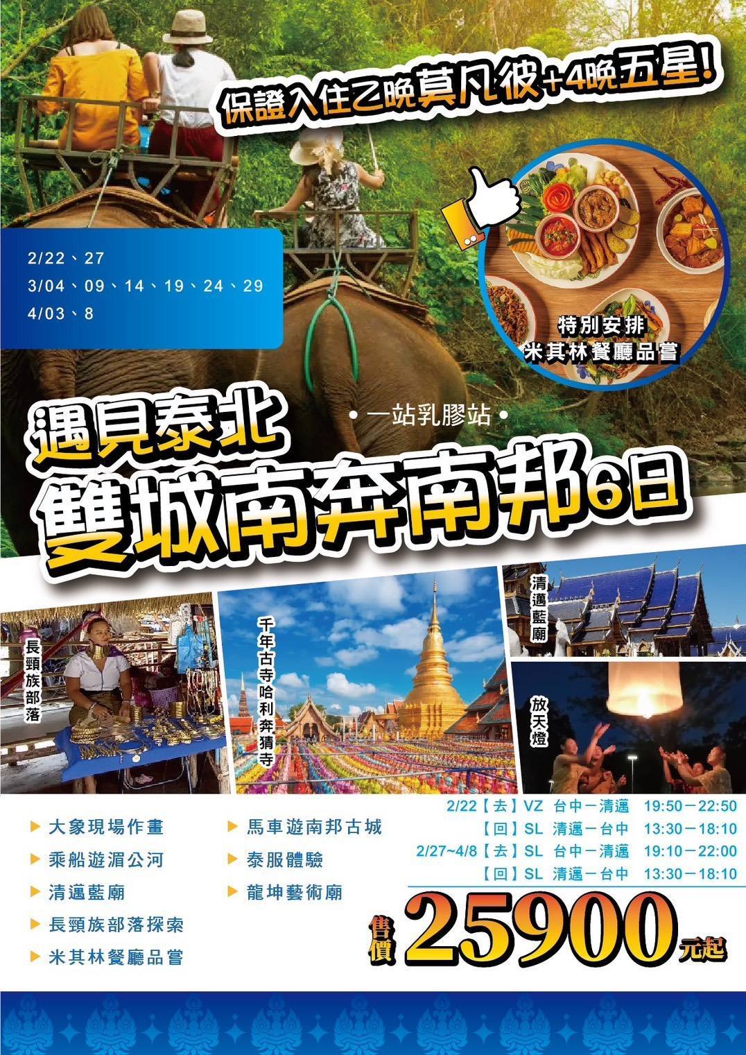 2026年02月27日起-遇見經典清邁6日(乳膠一站)